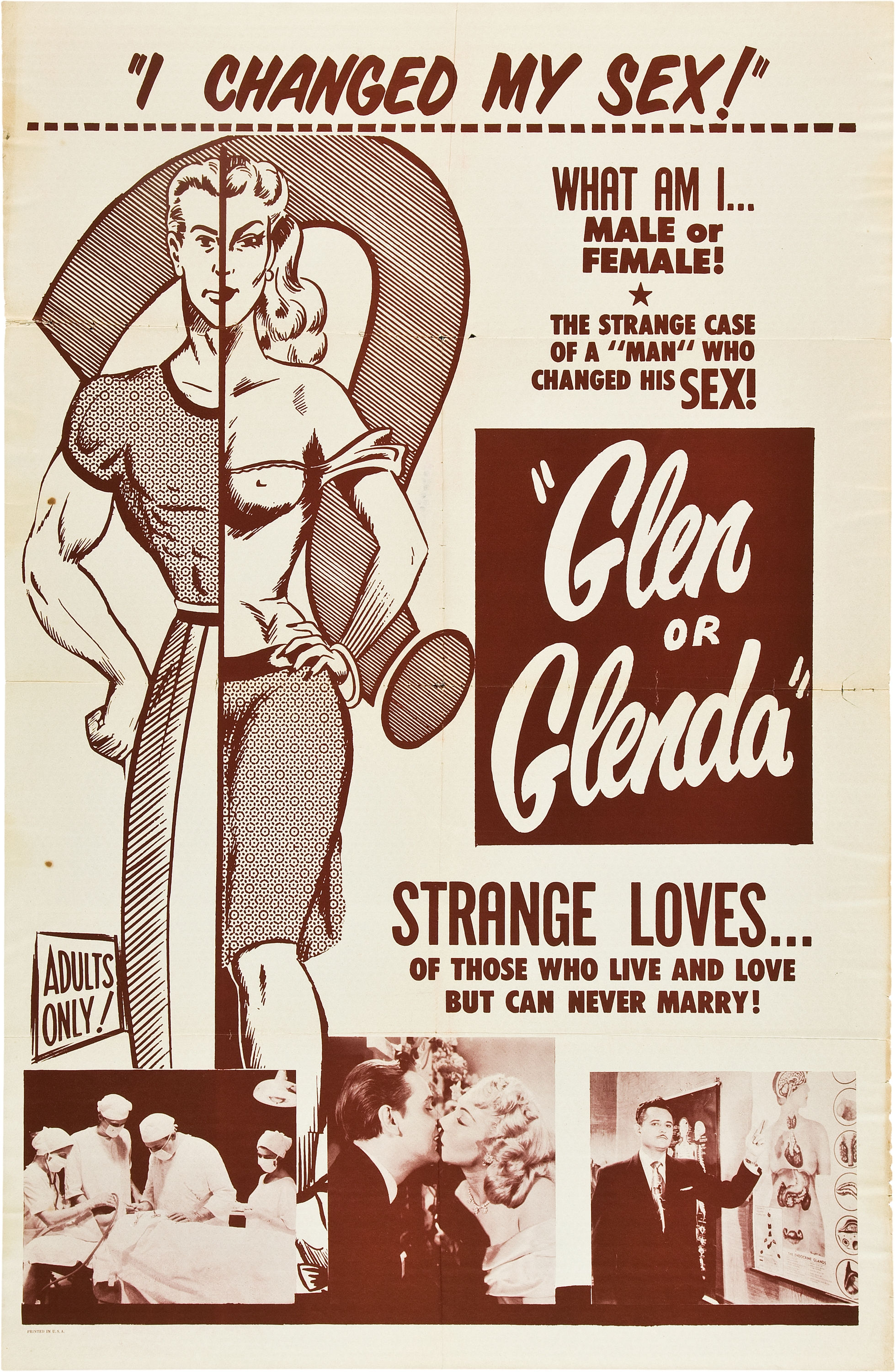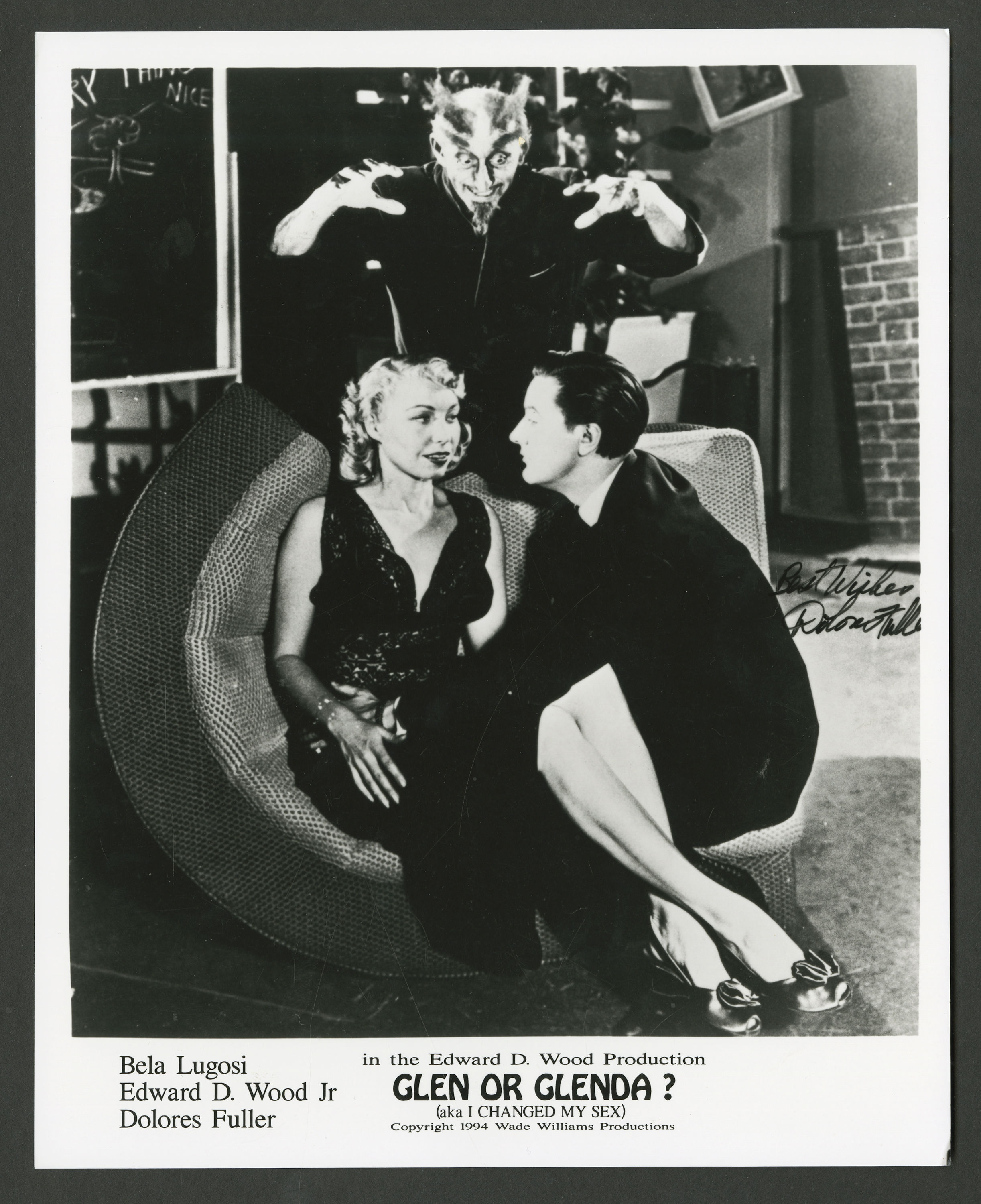 Né en 1924 à Poughkeepsie dans l’état de New York, Edward D. Wood Jr. se passionne pour le cinéma très jeune. Pour son douzième anniversaire, sa famille lui offre sa première caméra et depuis, il n’a plus qu’une obsession : partir à Hollywood et y faire carrière. Il y déménagera à la fin des années 1940, après avoir notamment servi chez les Marines, époque où il se baladait déjà en dessous féminins ! C’est ce sujet du travestissement qui sera au centre de sa première œuvre majeure, Glen or Glenda (1953). L’année précédente, une rencontre fondamentale va amener cet enthousiaste à réaliser ses rêves, celle avec son idole de toujours : Bela Lugosi, l’interprète du fameux Dracula de Tod Browning et de tout un tas d’autres rôles similaires. Si Glen or Glenda pourra sembler catastrophique aux yeux de certains de par son amateurisme technique, ses séquences fauchées et ses remplissages aberrants, ce métrage n’en est pas moins le plus fort et le plus personnel du cinéaste. Tout ce qui caractérisera ses films à suivre est ici présent en une sorte de patchwork surréaliste touchant et naïf. On peut y voir des stock shots de circulations urbaines, de guerre et de buffles, des jeunes femmes en positions bondage, un Diable grotesque, une voix off expressive, un Bela théâtral s’emportant sur un dragon vert sur le pas de la porte qui mange les petits garçons, les queues de chiens et les gros escargots, incantations repris par des voix d’enfants... Et cela n’est qu’un petit échantillon de ce que l’on retrouve dans ce pseudo-documentaire qui élabore un discours sur la tolérance à travers deux cas d’hommes se livrant au travestissement. Autant le sujet était brûlant à cette époque et souvent traité dans les séries B pour drive-in, mais jamais une approche aussi singulière n’avait été gravée sur pellicule.