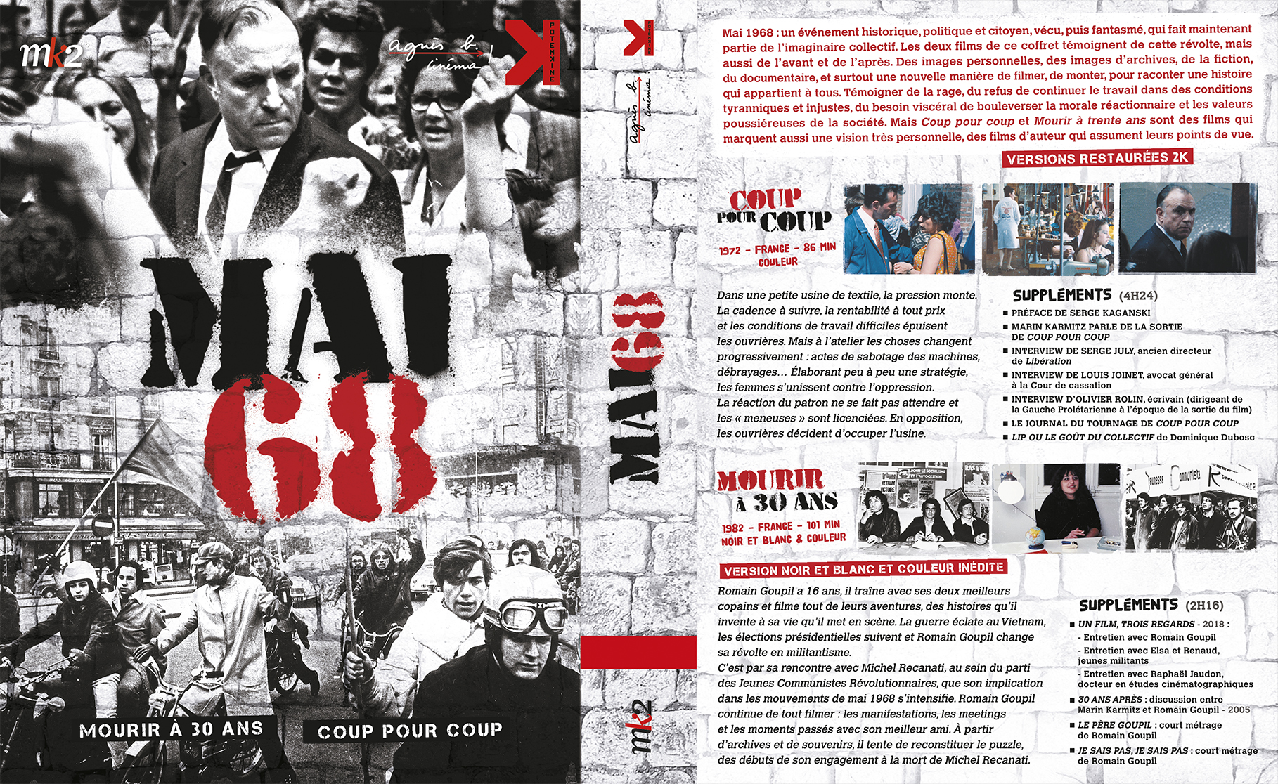 Les deux DVD sont très inégaux, même si les copies sont soignées : les images d’archives de Mourir à trente ans ne sont pas toujours de bonne qualité, et ceci est un euphémisme. Le 16 mm passe mal sur les appareils d’aujourd’hui : ça grouille, c’est flou, mal défini … Coup pour coup s’en sort mieux, la restauration permet un certain confort visuel, malgré les conditions de tournage. Beaucoup de fourmillements, mais une image stable et sans scories.