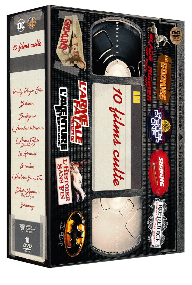 10 films cultes du studio incluant le Final Cut de Blade Runner de Ridley Scott, L’histoire sans fin de Wolfgang Petersen, Shining de Kubrick, Beetlejuice et Batman de Tim Burton, L’aventure intérieure et Gremlins de Joe Dante, le director’s cut de L’Arme fatale de Richard Donner, et, évidemment, le fameux Ready player one.