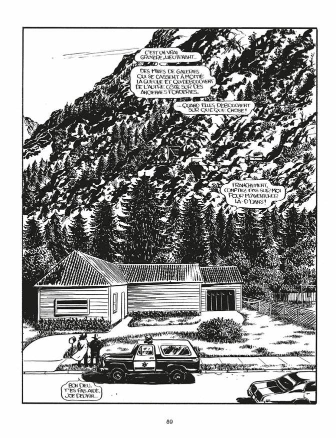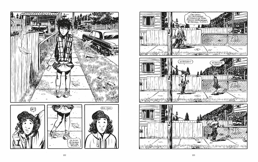 Critique : Colorado Train est l’adaptation éponyme du premier roman de Thibault Vermot, également publié chez Sarbacane. Inker fait le choix de transposer l’intrigue du roman – qui se déroule dans les années 1940 – aux années 1990, ce qui permet au dessinateur d’ancrer son récit dans la culture populaire (avec Converse, baladeurs, posters de Nirvana...) de son époque et d’explorer les conséquences sociales de la désindustrialisation dans l’Amérique profonde. Inker découpe son récit en vingt courts chapitres – sans compter un twist final – dont le titre est un titre de chanson rock ou métal à cette de cette époque. Sont notamment cités Metallica, Manson, Deftones, Wheezer… Accompagné de décors et de looks soigneusement travaillés, cette playlist contribue puissamment à ancrer le récit dans une époque pas si lointaine mais bien révolue : la révolution internet n’a pas encore touché nos sociétés, l’économie extractiviste est en crise et la guerre du Vietnam est encore un souvenir vivace pour les hommes…