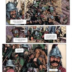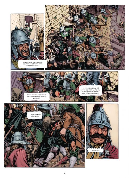Le dessin d’Igor Kordey commence à être reconnu et est reconnaissable. Ses moues souvent antipathiques, ses héros un peu rustauds et souvent costauds, font que les personnages mettent du temps à être acceptés, avant d’être totalement installés et incontournables. Dans un décor qui alterne entre le baroque du XVIIe siècle et l’inventivité que l’on retrouve chez Bethesda dans les séries Elder Scrolls, tout se mélange avec un ton assez sombre, pourtant relevé de nombreuses couleurs souvent peu utilisées en bande dessinée. Et pourtant, dans ce style hirsute, on se prend à voir quelques traces de Dionnet et de ses Armées du Conquérant, comme si cette ambiance rauque avait traversé les époques et les styles.