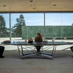 Compétition officielle est un film pour le moins original. Les deux heures se passent quasi entièrement dans les locaux vides de la fondation où la réalisatrice entend faire répéter ses deux acteurs. En réalité, plus qu’une préparation au tournage, elle les entraîne dans un combat intérieur où, l’un avec l’autre, ils apprennent autant de leurs défauts qu’ils ne se renforcent dans leurs comportements nauséabonds. On peut dire que cette comédie constitue une satire ouverte d’un certain monde de la création cinématographique qui se gargarise de ses succès et se perd dans un intellectualisme mondain et vaniteux.