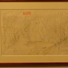 Dès la préparation, le trait si caractéristique du Studio est déjà bien présent. Ici avec un paysage forestier et un dessin de Ashitaka.