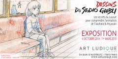 Du 4 octobre 2014 au 1er mars 2015, Art Ludique-Le Musée expose plus de 1300 planches de Layout : ce dessin préparatoire qui est devenue la technique signature de l’animations du Studio Ghibli et particulièrement représentative du travail de ses fondateurs d’Isao Takahata et Hayao Miyazaki !