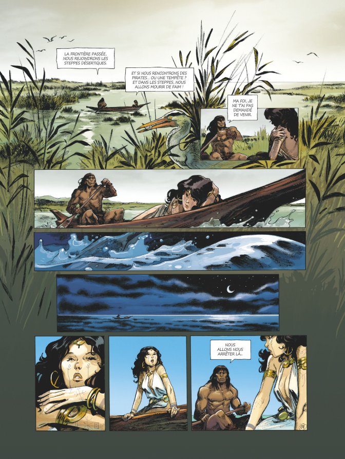 Résumé : Seul survivant d’un désastre militaire, Conan croise par hasard une princesse devenue esclave, Olivia, qui tente de fuir ses maîtres. Conan sauve la jeune femme d’un coup d’épée, et le couple décide de voyager ensemble. Leur périple les conduit dans une île paradisiaque apparemment déserte où ils découvrent d’étranges ruines aux pouvoirs inquiétants…