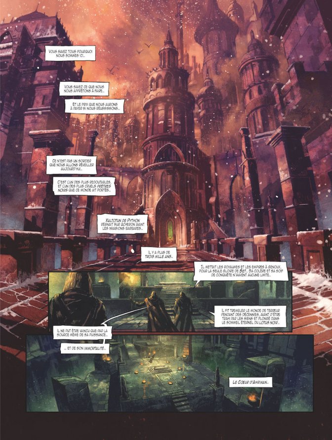 Résumé : Trois hommes dévorés par leur soif de pouvoir décident de réveiller le terrible Xaltotun de Python, prêtre noir de Seth et ancien empereur, en lui offrant le cœur d’Ahriman, source d’immortalité qui lui appartenait jadis. Les trois conjurés espèrent mettre le prêtre noir à leur service et renverser Conan, devenu roi d’Aquilonie. Fort de sa fidèle armée, le Cimmérien affronte avec vaillance les troupes des conjurés mais doit céder devant la puissance de la magie de Xaltotun de Python… Commence dès lors pour Conan une quête périlleuse pour entraver les sombres projets de Waltotun et retrouver son trône.