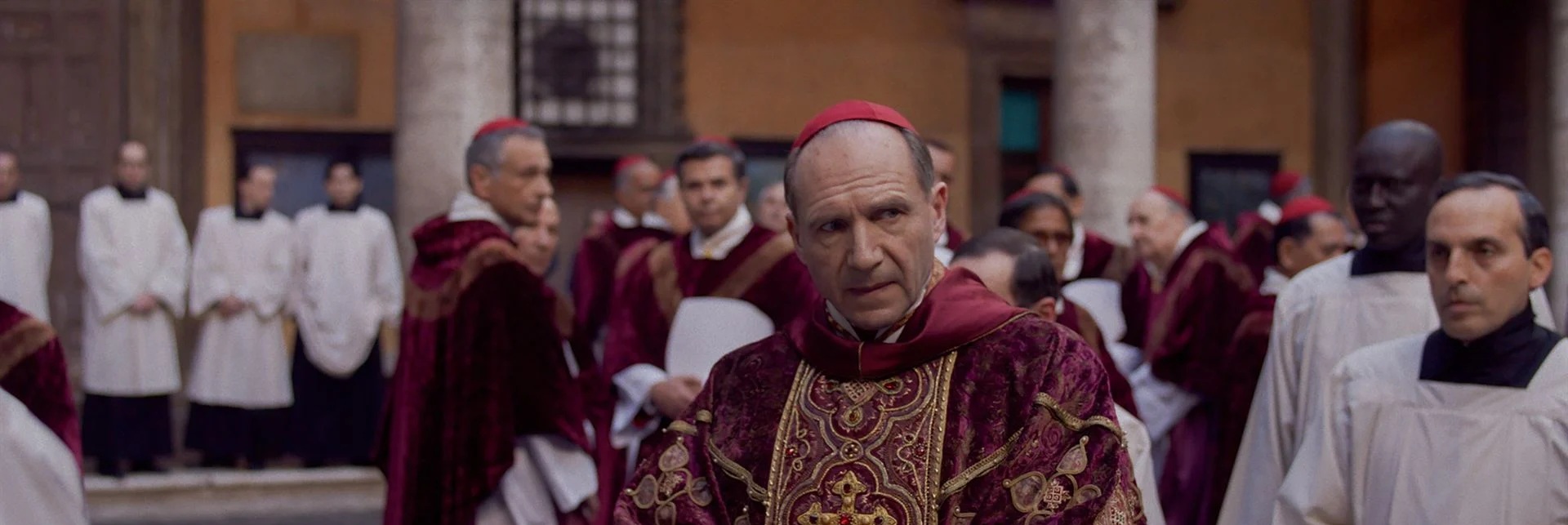 Le cinéaste a tort de craindre notre ennui. Le scénario à lui tout seul, égrenant les rebondissements tous les quarts d’heure, est rythmé comme une série télévisée. Son enjeu même (qui des quatre ou cinq prétendants à la papauté – libéraux ou conservateurs – sera élu ?) reproduit des ficelles ayant largement fait leurs preuves dans nombres de films et séries prenant place au cœur de l’arène politique. De vote en vote, d’un candidat favori en nouveau scandale lui faisant perdre son avance, le film monte en tension jusqu’au twist final. D’ennui, il n’est donc jamais question, surtout associé à la patine grave et sensationnelle d’une œuvre qui profite à plein de son décorum pour aligner les plans composés et autres ralentis spectaculaires. Malgré son caractère un peu bourrin, cette esthétique donne à voir ce qu’il y a de plus séduisant et impressionnant dans les décors du Vatican ou les apparats magnifiques des cardinaux.