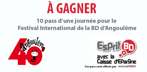 Jouez avec Bedeo et Esprit BD et gagnez 10 pass pour le Festival de la BD d’Angoulême qui aura lieu du 31 janvier au 3 février 2013.