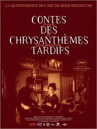 Ne croyant pas au « don » des artistes, mais guère plus à l’absence définitive de talent, Mizoguchi fait l’éloge de la persévérance et du poids des souffrances de la vie pour faire jaillir la source créatrice, au-delà de la simple maîtrise technique. Et l’on peut penser que le cinéaste s’est fortement projeté dans son personnage d’artiste de kabuki. En même temps, l’exclusion dont fait l’objet Otoku, victime d’un mépris de classe, confirme l’intérêt du cinéaste pour ces figures féminines aliénées, qui culminera avec Les amants crucifiés ou La vie d’O’Haru femme galante. Au niveau plastique, le film subjugue par sa maîtrise des plans-séquences longs, rarissimes dans le cinéma des années 30, et sa capacité à mettre la mise en scène au service de la dramaturgie. On appréciera ainsi la première discussion entre les deux protagonistes, au cours de laquelle la caméra rythme les dialogues d’un couple qui se cherche et se fuit. Et quand Kikunosuke cherche sa bien-aimée parmi des boutiques ou dans les compartiments d’un train, des travellings latéraux aux effets de panneaux coulissants traduisent avec finesse son affolement. Quant à l’utilisation du hors-champ ou du surgissement de personnages dans le champ pour susciter la tension, elle révèle tout autant un cinéaste dans la plénitude de son style. Jalon majeur de la filmographie de Mizoguchi, Le conte du chrysanthème tardif a par ailleurs sa place au rayon des œuvres ayant cerné les correspondances entre le théâtre et la vie, des Enfants du paradis au Dernier métro, en passant par Le carrosse d’or. Le film a fait l’objet d’une restauration numérique issue d’un transfert 4K, à l’initiative du studio Sochiku.