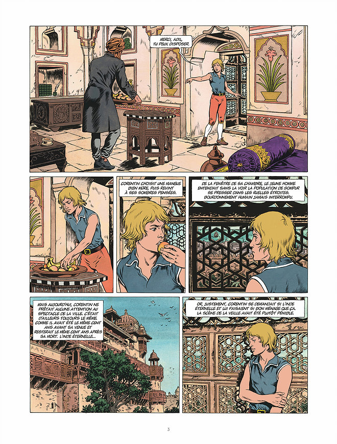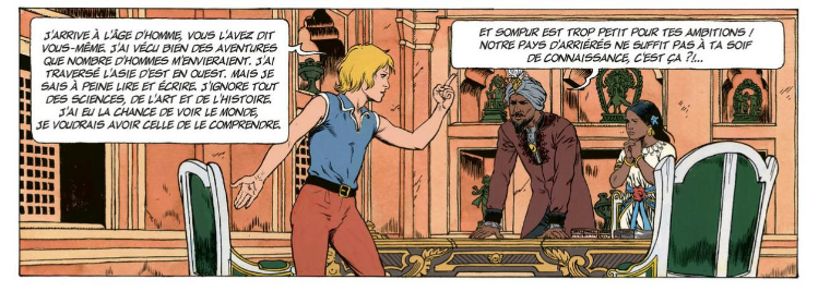 Mais voilà, il y a surtout derrière ces apparences un graphisme superbe qui rend hommage à la BD de nos illustres anciens, parfois à la limite de la peinture, notamment sur de pleines pages sublimes et un scénario où le héros a bien plus de profondeur que ces cheveux blonds, une sorte de grand aventurier dans cet univers indien, mystérieux et passionnant.