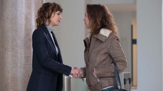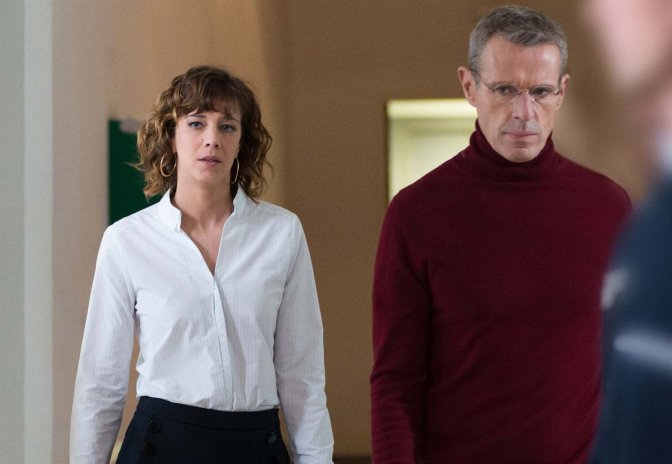 Le réalisateur place l’humain au cœur de son sujet et s’appuyant sur un casting de grande qualité, il nous sert avec froideur quelques beaux échantillons de la nature humaine allant du plus tendre au plus détestable. Pivot essentiel de ce drame, Céline Sallette accompagne avec tout le talent qu’on lui connaît la résurrection de cette femme. Aguerrie à la dureté du monde du travail, elle a perdu toute trace d’humanité. Quand elle devient elle-même la proie de ceux qui lui ont appris à tuer, sa carapace se fissure. Elle reprend contact avec ses émotions. Loin du monde de l’entreprise à la rigidité carcérale, quelques scènes nous la montrent dans sa vie de mère ou de femme (son compagnon, d’origine anglaise, jeune cadre flegmatique et décontracté lui apporte l’équilibre qui lui fait défaut), suggérant qu’en elle deux personnalités s’affrontent. L’amitié amoureuse et bienveillante dont son ami Vincent (merveilleux Stéphane De Groodt à la fois délicat et léger) la couve jette un voile de douceur sur ce monde de brutes. Se défendant de vouloir raconter la rédemption d’une « méchante », Nicolas Silhol s’applique à nous démontrer que c’est bien la fonction qui a perverti Emilie. Si, dans un premier temps, elle contacte l’inspectrice du travail, c’est surtout pour sauver sa peau. C’est bien le duel qui s’engage entre les deux femmes qui installe l’ambiance de polar dans lequel baigne l’intrigue d’un bout à l’autre. Du même âge, dotée d’un tempérament dynamique, elles pourraient être amies. Pourtant, leurs fonctions respectives les opposent. Emilie (Céline Sallette) a une féminité contrôlée et sophistiquée, prisonnière d’un carcan dans lequel elle s’est laissé enfermer. Marie (la peu médiatisée Violaine Fumeau qui gagne à être connue) est spontanée et généreuse. Elle est inspectrice du travail mais son comportement s’apparente à celui d’une inspectrice de police. Dans cette mise en scène qui place les personnages dans des espaces vitrés et cloisonnés et les emprisonne dans des cadres tranchants, elle virevolte, fait ce qu’elle veut, elle dérange. Elle est l’espoir d’une bouffée d’air pur, en opposition à l’univers d’oppression dans lequel sont plongés les personnages. L’hypocrisie et le cynisme progressivement envahissant, symbolisés par un Lambert Wilson dont la prestance et l’autorité naturelle renforcent l’authenticité, maintiennent une tension permanente qui empoigne le spectateur pour ne plus le lâcher.