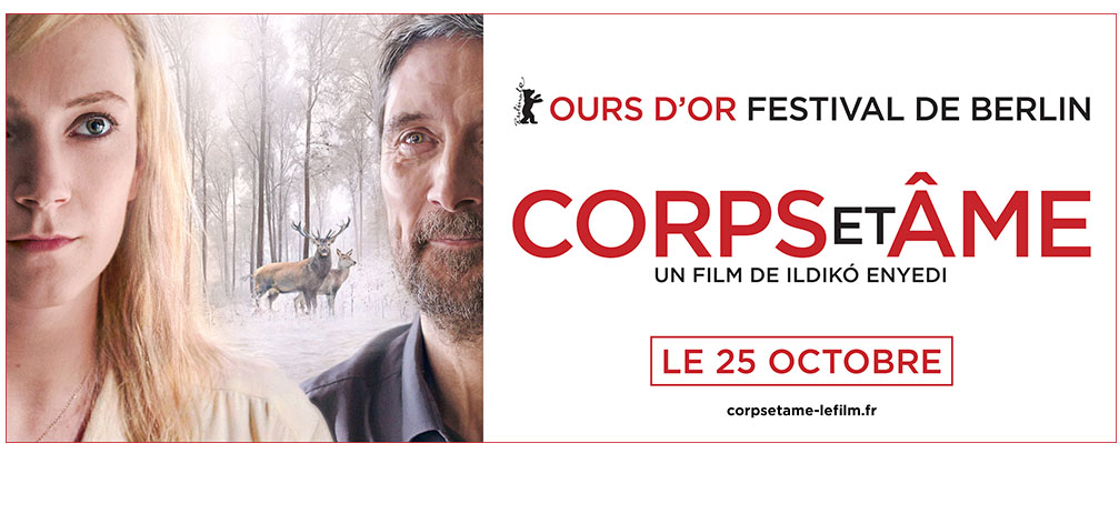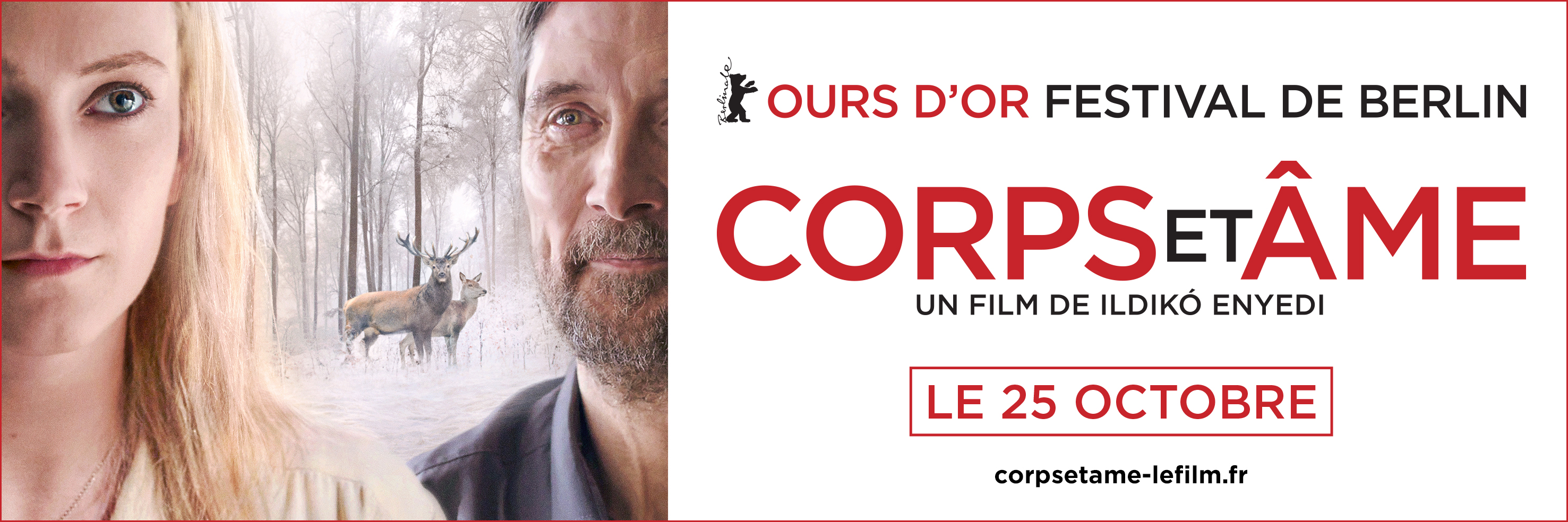 Critique : Le film s’ouvre sur une forêt enneigée. Des arbres sombres barrent l’écran comme les barreaux d’une prison, découpant l’image en de multiples petits cadres. Un cerf vient gratter la neige à la recherche de nourriture. À quelques mètres de lui, une biche tente aussi de brouter sans vraiment y arriver. Le dispositif de mise en scène de Corps et âme est en place dès la première séquence. Dès la première image. Corps et âme est l’histoire de deux personnages : un homme et une femme. Endre et Maria, respectivement directeur financier et nouvelle responsable qualité d’un abattoir de bovins. Solitaires, prisonniers de leurs handicaps physique et mental (l’un souffre d’une paralysie du bras gauche, l’autre d’une forme d’autisme troublante), ils semblent condamnés à rester simples spectateurs de leurs vies, comme l’étranger de Camus. C’est en tout cas ce que tend à signifier la réalisation d’Ildikó Enyedi, aux partis pris esthétiques tenus et assumés, jouant sur de nombreux sur-cadrages et une très faible profondeur de champ pour signifier l’isolement et la détresse silencieuse des deux protagonistes qui, chaque nuit, se retrouvent en rêve mais peinent à se retrouver ensuite au réveil.