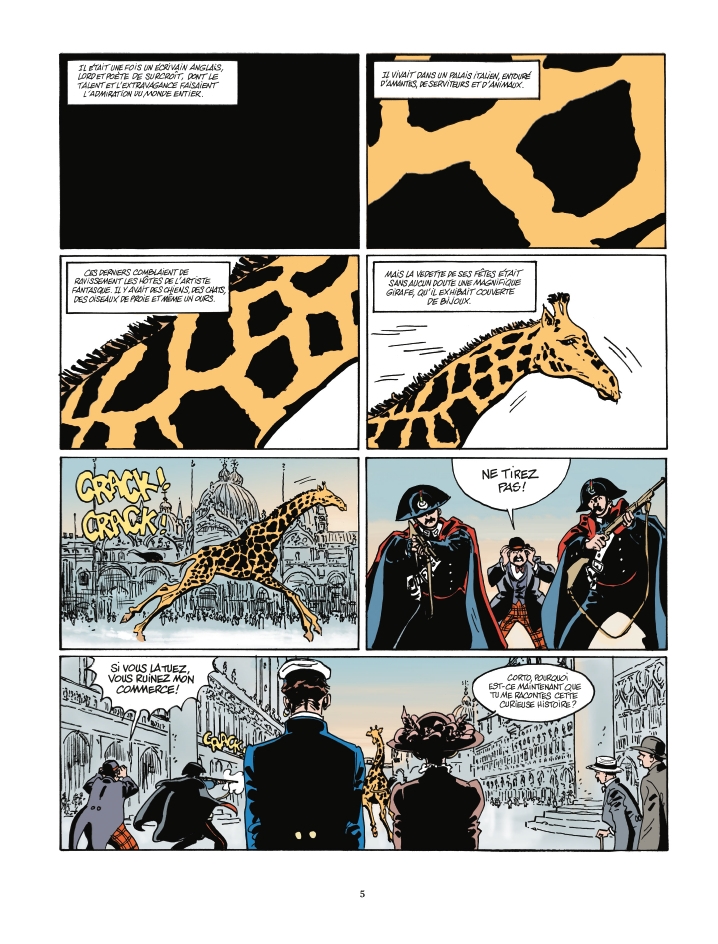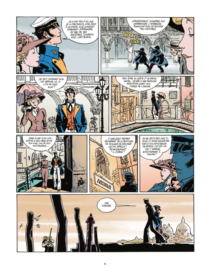 Cette fois-ci, le coup de pinceau de Pellejero rappelle bien celui du maître. Rien à redire, pas de surprise, la version couleur égaiera les récents, les fans de la première heure auront sûrement le coup de cœur pour le noir et blanc. Venise et l’Afrique ont ce côté rassurant puisque ce sont des lieux qui sont déjà apparus dans des tomes précédents, les traits ont cet aspect familier, et c’est finalement sur les personnages que les nouveautés surgissent. Signes cabalistiques, thé oriental, attentat au Caire : les scènes sont décrites sans détail inutile, le décor étant souvent en contraste, comme dans les albums signés par Pratt. Une nouvelle fois, la technique respecte l’ambiance de la série, sans dénaturer et sans s’aventurer trop loin, et c’est un bon point.