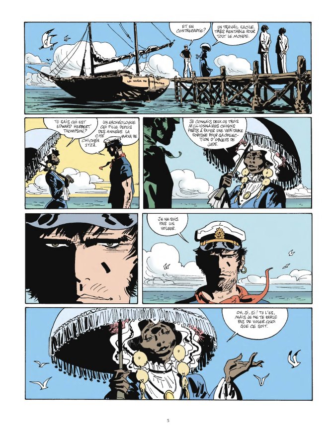 Avec ce cinquième tome de Corto Maltese qu’ils réalisent, Juan Díaz Canales (scénario) et Rubén Pellejero (dessin et couleur) continuent de montrer que leur interprétation du héros d’Hugo Pratt a du sens, qu’ils élaborent des aventures à la mesure du personnage, mais également, à l’instar du créateur italien, qu’ils adaptent leurs partis pris (narratifs, esthétiques…) à ce qu’ils racontent, aux histoires comme aux sensations qu’elles véhiculent.