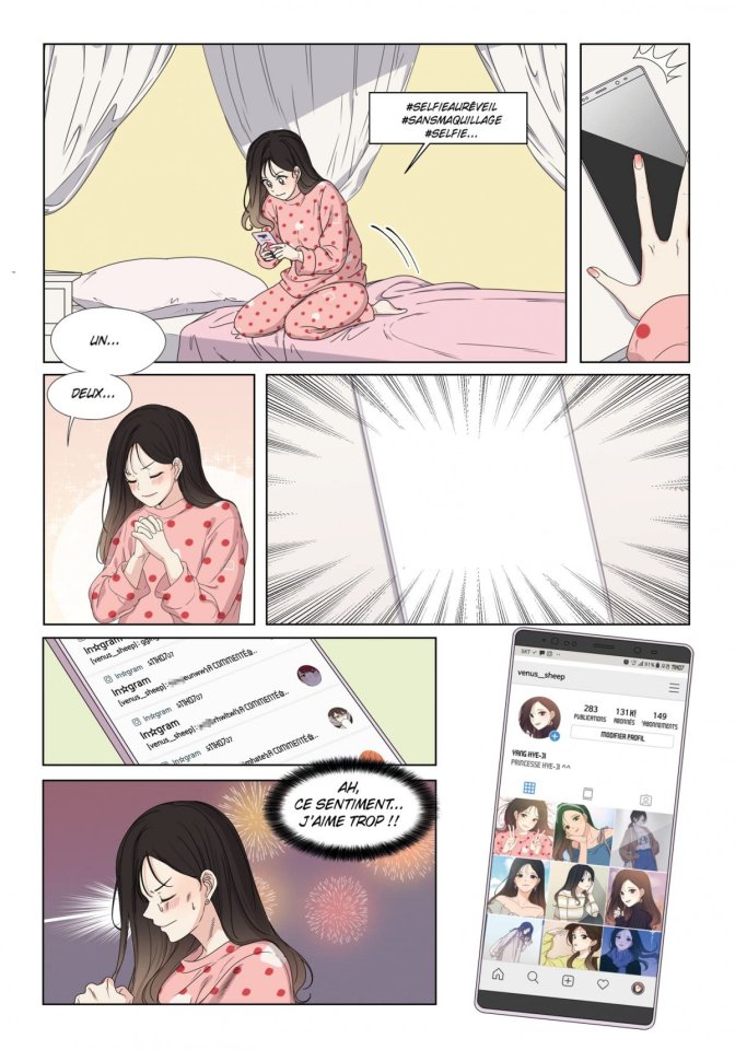 Après la vague manga, préparez-vous au tsunami webtoon. Ces bandes dessinées venues de Corée du Sud sont assurément une nouvelle mode qui va faire des émules, surtout auprès d’un public jeune et friand de nouvelles histoires venues de l’orient. Comprenez-nous bien, nous sommes les premiers partants pour découvrir ce qui va faire de nouveaux récits, de nouvelles manières de raconter, et cette nouvelle collection, qui se lit dans le sens habituel, qui prend des couleurs, est très addictive. L’intrigue n’est ni originale, ni inhabituellement traitée, mais il y a un plaisir certain à contempler cette vie de lycéenne, qui est au centre de l’attention, qui commence à ressentir quelque chose pour un garçon un peu mufle mais beau gosse, l’une ayant une mère ancienne miss, l’autre orphelin devant prendre soin de son petit frère... Pas de doute, c’est écrit tranquillement, sans grand rebondissement mais justement, ce faux rythme instaure une évidence réaliste, sur fond de popularité et réseaux sociaux qui ajoute une dimension actuelle que les teen dramas n’avaient pas il y a vingt ou même dix ans. Le fond est le même, la forme est peu différente, mais l’ensemble apporte un vent frais, propice, intéressant.