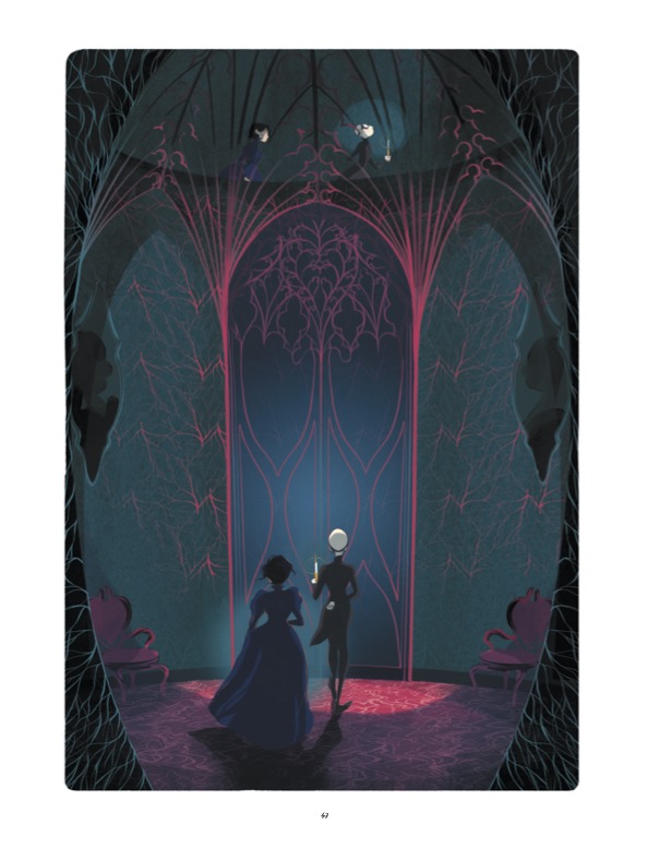 Critique :Adaptation du roman de Flore Vesco paru en 2021 à L’École des Loisirs (groupe dont fait partie Rue de Sèvres), D’or et d’oreillers est un conte moderne et intelligent dont la portée – comme tout bon livre jeunesse – dépasse le lectorat enfantin. L’album interroge en effet les rapports de genre et les rapports sociaux, avec un renversement qui se construit progressivement au fil de l’album entre Sadima, au départ simple femme de chambre, et le Lord Handerson, dont les capacités sociales sont entravées par un traumatisme dont prend conscience la jeune femme au fil des pages. L’intrigue est centrée sur le château de Lord Handerson qui réinterprète le vieux thème de la « maison hantée » : si Lord Handerson est riche, une forme de malédiction pèse sur sa personne, et c’est en combattant celle-ci que Sadima s’attache le riche héritier. Ainsi, D’or et d’oreillers présente bien une forme de morale, sur l’importance du courage et l’intelligence peuvent combler une mauvaise naissance, et la découverte de l’autre au-delà des apparences.