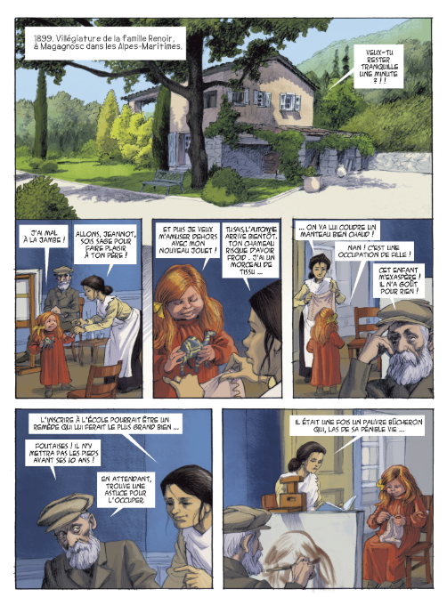 L’ouvrage est découpé en scènettes qui vont et viennent dans le temps. Ainsi on en apprend un peu plus sur la vie de Jean, l’un des fils du peintre qui fut également l’un des réalisateurs majeurs du XXe siècle.