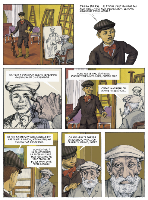 Le dessin est vibrant et vif, et l’on se laisse guider par les souvenirs des écrits de son fils Jean et des témoignages d’époque, les flashback au fil de la mémoire du maître dans son Paris de la Deuxième République, sous le règne de Napoléon III.