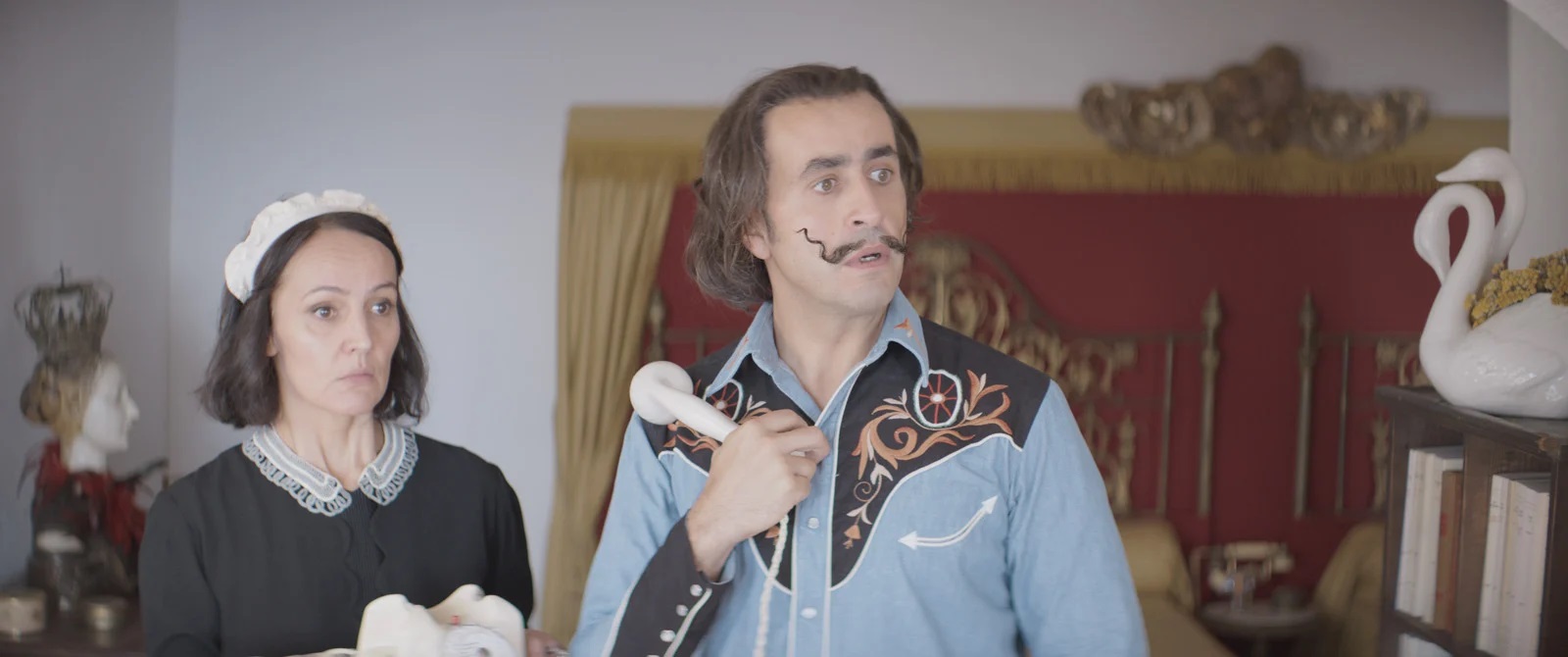 Le personnage de Dalí est interprété à cinq âges de sa vie, par des comédiens étonnants et talentueux, à savoir Pio Marmaï, Gilles Lellouche, Édouard Baer, Jonathan Cohen et Didier Flamand. Les protagonistes se croisent en bord de mer, dans des dîners et, à chaque fois, s’arrogent un accent chantant très proche de celui du véritable Dalí, pourvus de la fameuses moustache en U. Quentin Dupieux s’amuse autant que les acteurs à en rajouter dans la fantaisie, sans jamais sombrer dans la vulgarité et l’ineptie. Quant à Anaïs Demoustier, elle rayonne au milieu de ces bonhommes enjoués, dans la peau d’une apprentie journaliste timide et maladroite. Les dialogues ne reculent devant aucune facétie, dès lors qu’il s’agit de moquer les excès d’orgueil du maître de peinture.