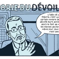 Le récit est construit autour de l’enquête menée par les deux auteurs, qui se mettent en scène et rendent compte en dessin de leurs échanges et des entretiens qu’ils mènent avec différents spécialistes des nouvelles technologies. Ce mode de narration confère une certaine dynamique au récit, d’autant plus que Josh Neufeld parvient, sur certains dessins et quelques échanges entre les deux protagonistes, à instiller une dose d’humour nécessaire à la conduite du récit qui, sans cela, relèverait de l’exposé rébarbatif. Cependant, le récit ne se départ pas d’un certain didactisme et les échanges entre les deux auteurs-personnages ne sont là que pour exposer ou mettre en lumière une théorie (comme la « théorie du dévoilement », très bien expliquée) ou les problèmes / questionnements liés à l’utilisation de certains types d’applications (Uber, Snapshot, etc). Dans cette même logique, le dessin, efficace et sans fantaisie, tâche d’être suffisamment dynamique et varié pour servir au mieux le discours véhiculé.