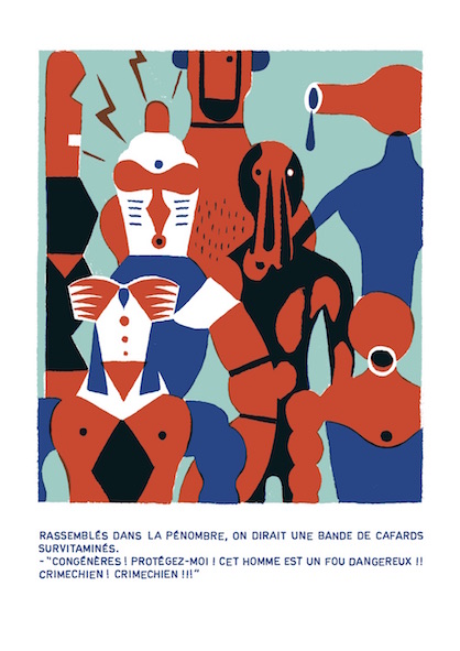 De circonstance puisque nous fêtons en ce mois d’octobre les 100 ans de la révolution soviétique, mais également car le dialogue est intense entre ce mouvement artistique du début du XXème siècle et la pensée de l’artiste qui sévit depuis les années 90. Imprimeur, éditeur, illustrateur, auteur de bandes dessinées, Blexbolex arpente les espaces du livre, de l’image, du texte, au cœur de leurs interactions et sensualités propres. De ses tendres imagiers (L’imagier des gens [1], qui a reçu le prix du plus « beau livre du monde » en 2009 ; Saisons Albin Michel jeunesse, 2009, Romance Albin Michel jeunesse, 2013) à ses nébuleux récits (L’œil privé [2], Crimechien [3], Hors-zone [4]), graphisme et narration s’interrogent intimement, portés par des inspirations d’un autre temps (Frans Masereel, Malevitch, ligne claire, estampes japonaises…).