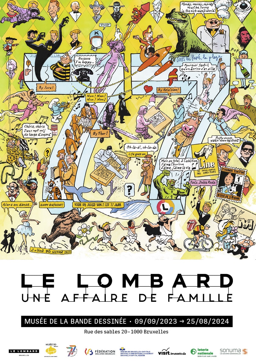 "Le deuxième étage du Musée de la Bande Dessinée (Bruxelles) renoue avec l’esprit initial des anciens magasins Waucquez. À partir du 8 septembre 2023, il accueille en effet l’exposition des 77 ans du Lombard présentée dans un dispositif inédit. Conçue comme un showroom d’ameublement, cette exposition présente 77 ans de bande dessinée familiale. Avec sa genèse, sa mythologie, ses pionniers et ses têtes d’affiche, ses défricheurs et ses francs-tireurs".