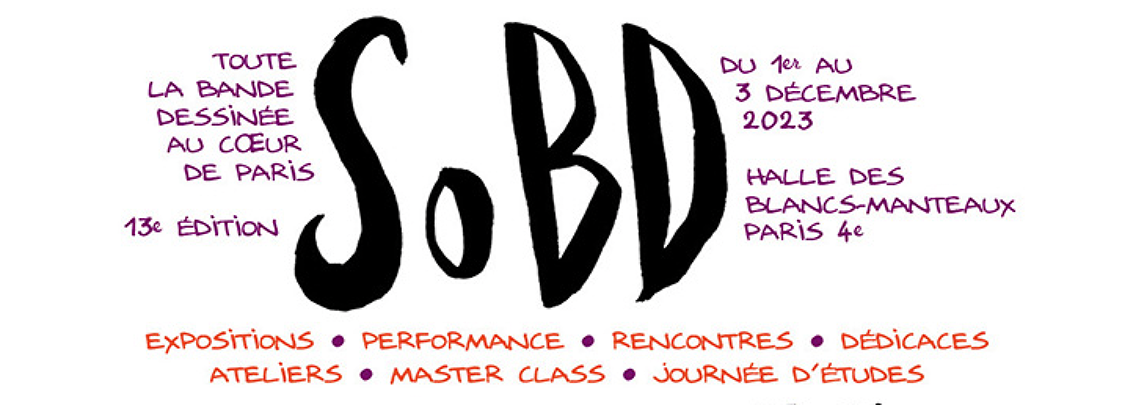 Le SoBD s’installe du 1er au 3 décembre à la Halle des Blancs-Manteaux, au cœur de Paris, avec une programmation élargie qui débute le 23 novembre 2023 pour se terminer le 29 janvier 2024.