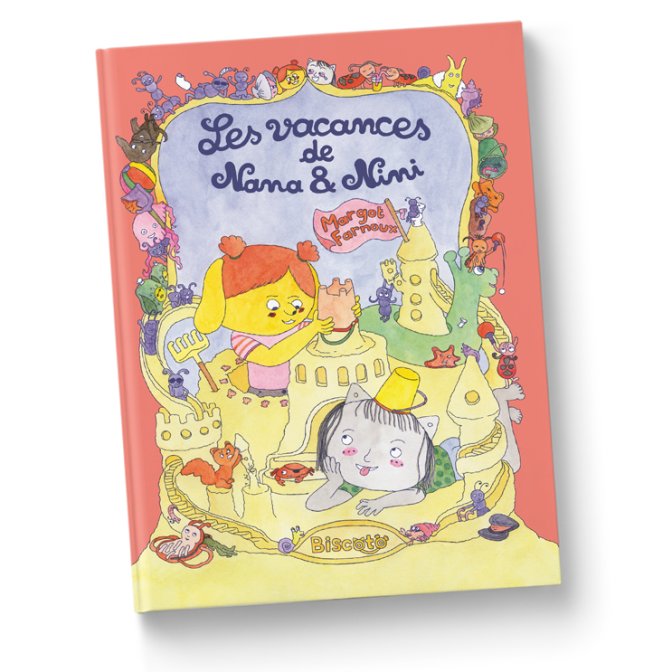 "Les pieds qui puent, les escargots qui bavent, les cacados qui disparaissent : décidément la vie de Nini et Nana n’est pas simple. Elles passent leurs vacances pas très loin de la mer, dans la maison de Mima. La pauvre grand-mère est plutôt inquiète à l’idée de s’occuper des deux fillettes. Car si elle les surnomme ses alouettes, elles ressemble parfois plus à des ouragans qui emportent tout sur leur passage. Dans le jardin de Mima, Nini et Nana vont très certainement gâcher l’anniversaire de Frédi l’écureuil, écraser quelques fourmis et empêcher les coléoptères gendarmes de jouer au ping-pong. Quant au voisin, Nono, et son chien mâchouilleur de claquettes, leur journée à la plage ne sera pas de tout repos non plus ! "