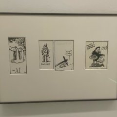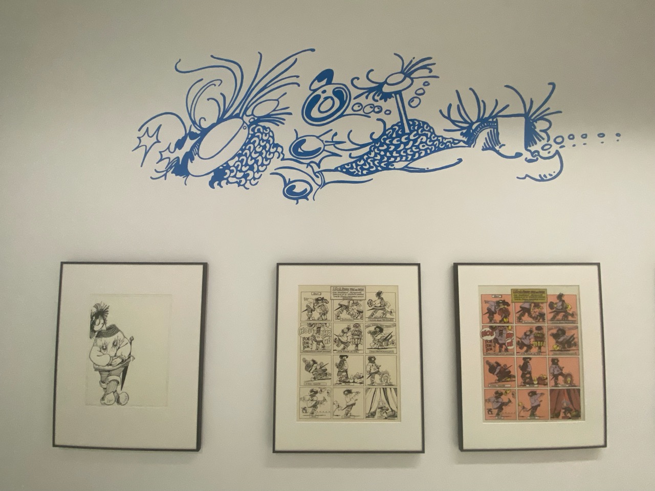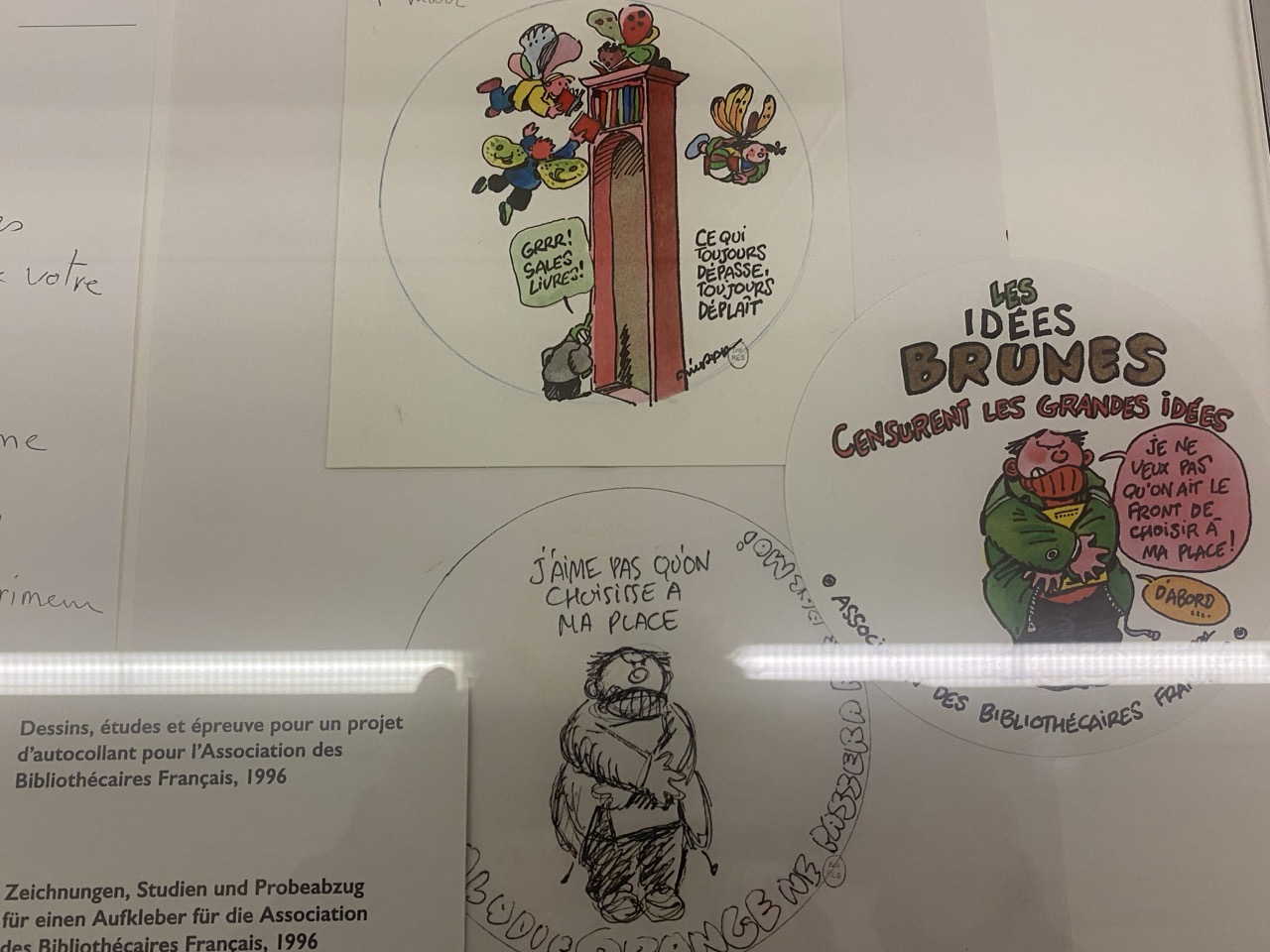 On y retrouve en écho de nombreuses allusions à la littérature, à la culture quotidienne et à la philosophie. Outre l’œuvre de bande dessinée – tels les livres consacrés aux libres et redoutables héroïnes Jehanne d’Arc et Naphtalène, la première bande dessinée Au Loup ! et l’ouvrage le plus politique sur la guerre en Afghanistan dans les années 1980, Le Char de l’État dérape sur le sentier de la guerre – l’exposition présente pour la première fois de manière approfondie, et avec un regard dans les coulisses des étapes de création, l’œuvre d’illustration où résonnent les motifs de l’univers des bandes dessinées. On y découvre des dessins de presse ainsi que des illustrations pour des revues, maisons d’édition et des agences telles que Notre Histoire, Utopia ou l’Anvar.