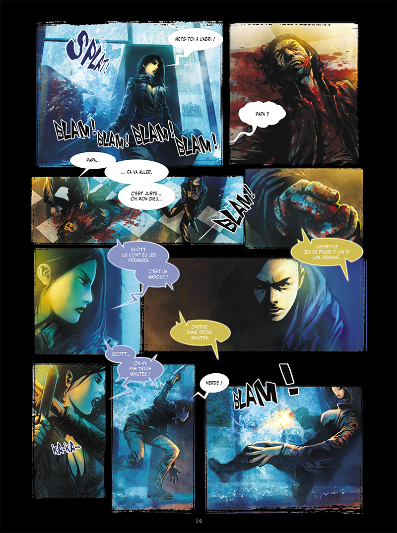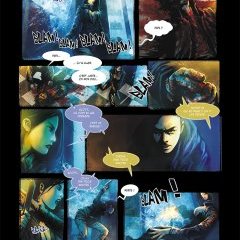 Dans une atmosphère où le dessin se mêle aux couleurs ajoutées numériquement, où le manga rencontre la planche européenne, Daomu livre une impression contrastée. D’un côté, l’originalité du style montre une envie, celle d’offrir un mélange de plusieurs origines et dessins, et un travail, imposant puisque les quelques 136 pages du volume sont colorées et abouties. D’un autre côté, ce mélange n’est pas assez subtil, contrôlé pour être vraiment gracieux et plaisant à lire. Les pages font la part belle à l’obscurité, mais sans les effets de clair-obscur, donnant une certaine uniformité à tous les personnages, que l’on peine à reconnaître. Les lieux également, surtout sous terre, ne permettent pas de vrais identifications, du coup le lecteur manque de repères, et le contenu manque cruellement d’empathie. L’histoire du père abandonnant sa famille n’est pas bien exploitée, les différentes équipes de pilleurs de tombes ne sont pas assez développées, les personnages ne provoquent pas grand chose. Ce premier tome, qui constitue une initiation pour le héros, pour sa première descente dans une tombe fantastique de la Chine antique, ressemble à un mauvais film d’horreur. Des monstres petits, puis immenses, morts-vivants, des zombies, il y a décidément de tout dans les tombes chinoises, mais cela ne fait pas vraiment peur.