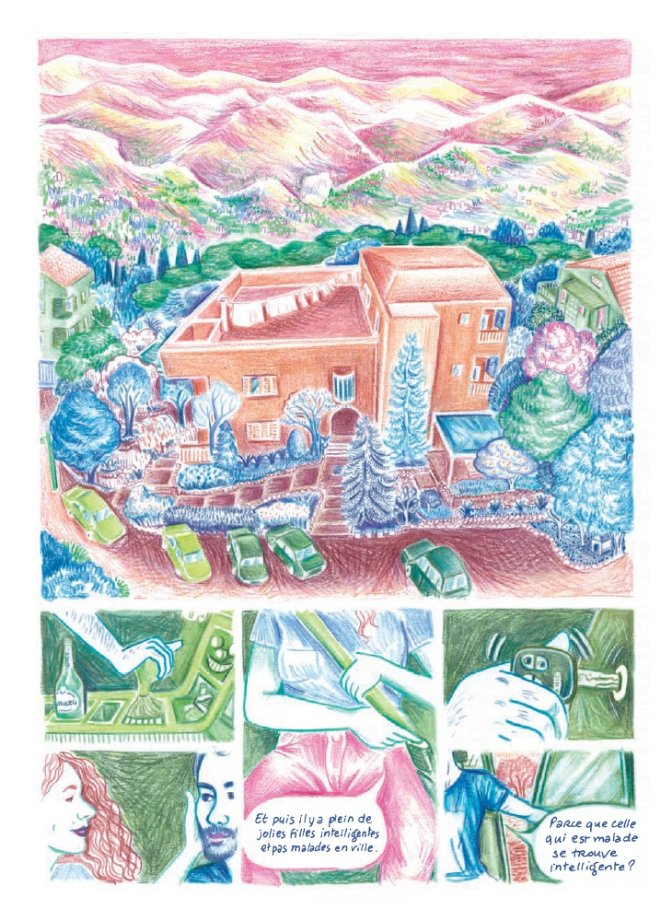 Invitée à séjourner en France pour la réalisation de cet album, l’autrice est parfaitement dans son temps pour livrer une œuvre d’une contemporanéité inouïe : tout d’abord, un sujet autobiographique ancré dans une génération spontanée, qui ne veut plus de tabou, qui veut dire les choses haut et fort, quitte à parler vite, mais toujours sincère, avec une étrange lucidité. Ensuite, un style graphique clairement identifié, clair, franc, farouche, coloré, mais nous y reviendrons. Enfin, l’envie de ne pas donner de leçon, de ne pas raconter d’histoire, de faire un déroulé de ressentis, d’éclairs et d’ellipses selon ses envies, et non sous la contrainte d’une routine scénaristique.