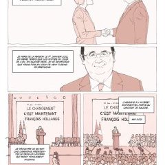 Critique : Pour la PMA (procréation médicalement assistée), en France, il a fallu attendre septembre 2021. Auparavant, il fallait franchir la frontière pour se rendre dans certains pays ayant légalisé une pratique finalement normale, mais évidemment pas banale au moment de la mettre en œuvre. On suit un de ces trajets vers la Belgique, vers l’espoir et son lot de ses déceptions, durant cinq années. L’album lie cette quête au destin politique, et la temporalité du titre n’a rien d’un hasard. La scénariste, qui raconte son parcours réellement vécu, est une proche de François Hollande : elle fut la réalisatrice employée pendant la campagne et le quinquennat de l’ex-président socialiste. Celle-ci se concentre cependant essentiellement sur la vie en couple de deux homosexuelles à l’heure du mariage pour tous (finalement adopté et du projet de PMA (rejeté à cette époque). Il s’agit de montrer à quel point la politique influence sur nos vies, avec notamment l’exemple des manifestations anti-mariage pour tous qui font du mal aux protagonistes.