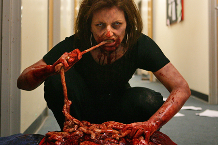 L’influence de Romero est partout, Brooker ne s’en cache pas, notamment lors de certains plans sanglants qui resservent la grande messe anthropophage du Jour des Morts Vivants. Toutefois, dans ce joli bordel en 5 épisodes, on restera quand même sur notre faim quant à la psychologie un peu limitée de l’ensemble du programme. Au beau milieu d’une apocalypse de chair et de sang, on ne ressent guère d’empathie pour des personnages assez irritables réduits à des stéréotypes exacerbés (la bimbo conne, le vieux pervers, le producteur véreux, le petit ami jaloux, le flic raciste qui disjoncte...). Pas de quoi stopper les amateurs de macchabées en furie, faute d’originalité, Dead Set offrira de nombreux morceaux de bravoure et notamment une attaque finale ahurissante de sauvagerie.