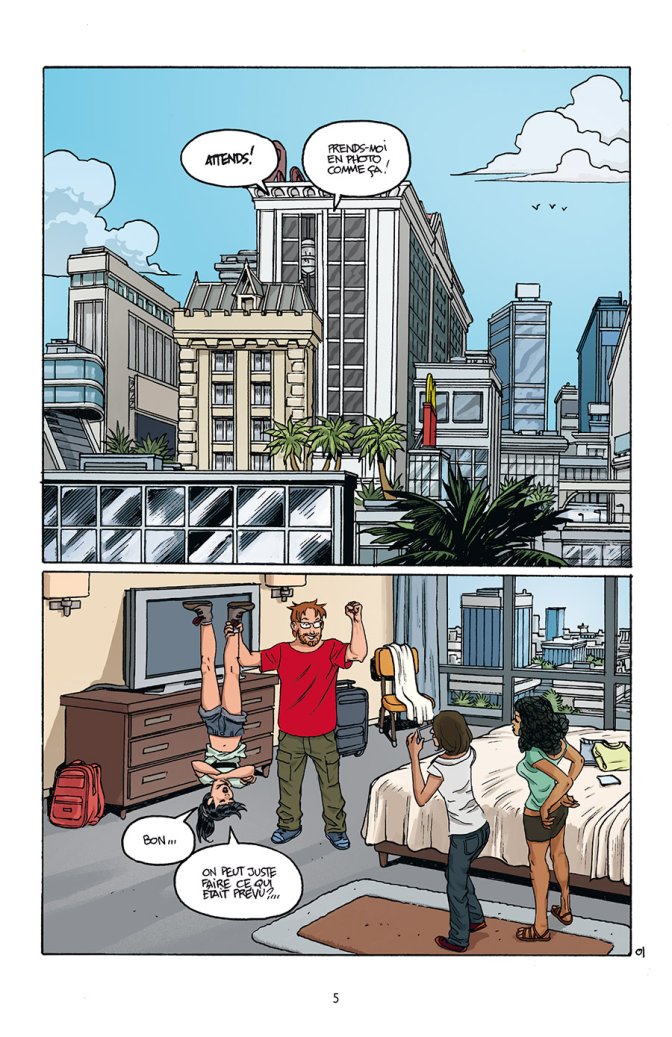Rien n’a changé au niveau du dessin. Stan & Vince travaillent main dans la main pour donner un comic riche et coloré, avec des traits de personnages qui pourraient faire penser à ceux de Janjetov époque Avant l’Incal sur certains coins, mais un ensemble bien ancré dans le monde d’aujourd’hui, fluide et reconnaissable. Ce style va de pair avec des monstres qui portent bien leur nom malgré leurs bonnes intentions, des réactions comiques de certains personnages, quelques caricatures et scènes d’action exagérées qui enveloppent le tout d’un ton léger, à l’image donc du dessin.