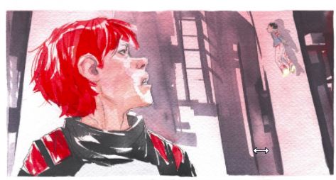 A la croisée de ces deux démarches, Descender rentre dans la catégorie des projets personnels mais pour lesquels il a confié le dessin à un autre. Son trait si particulier s’accorde en effet assez mal aux décorums grandioses de space opera.