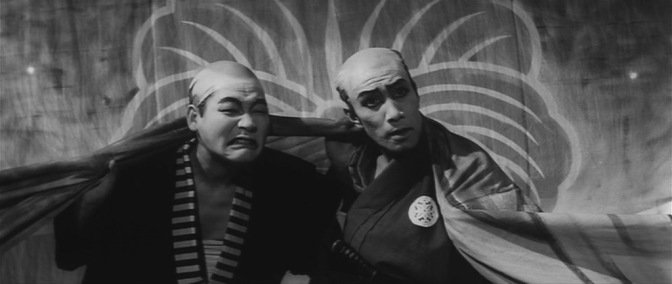 Ce qui frappe dès les premières images et ne sera pas démenti par la suite, c’est l’utilisation de l’écran large : pour figurer la promiscuité ou disposer les personnages en une scénographie toujours signifiante, Imamura jongle avec la profondeur de champ et de savantes compositions qui, pour être classiques, n’en sont pas moins remarquables. Mais cette forme impeccable lui permet aussi de brasser les protagonistes en un quasi-ballet, à la mesure des sentiments qui les animent. Et, au fond, le film ne cesse de parler de désirs : du voyeurisme (les strip-teaseuses) au moindre figurant qui lorgne une spectatrice, tous sont en proie à des pulsions souvent non partagées. À ce jeu des passions s’ajoute le goût du spectacle -qui se combine avec lui jusqu’à presque proscrire l’intimité- et la difficulté à créer et à en vivre. À cet égard le personnage du metteur en scène, double hypothétique du réalisateur, tiraillé entre la tentation de la télévision et l’attrait du théâtre, même minable, incarne à lui seul une sorte d’oxymore, quelque chose comme une grandeur de bas étage.