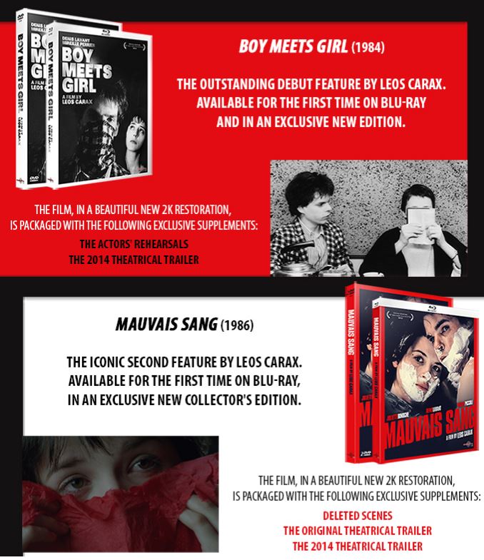 Les deux films de jeunesse de Leos Carax, et ses deux oeuvres les plus cultes, sont disponibles en DVD et blu-ray aux USA chez Carlotta !