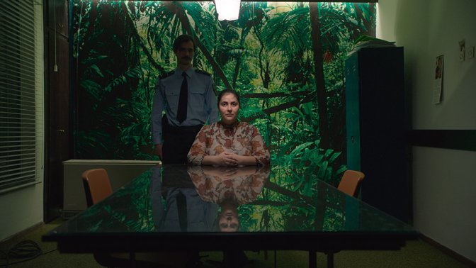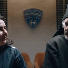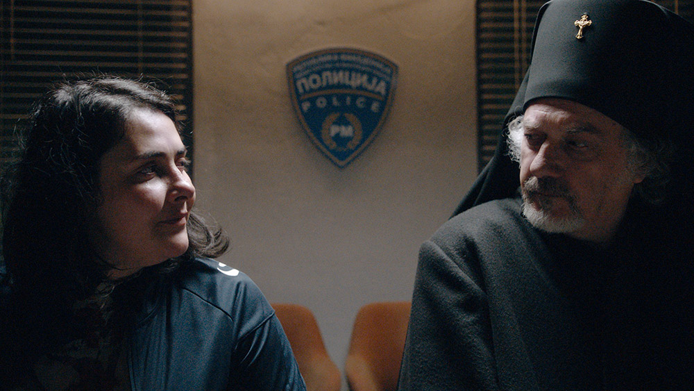 S’il ne se cantonne pas à un lieu, le film donne une impression de huis clos intimiste. Que ce soit dans le foyer familial où furète une mère omniprésente ou dans le commissariat, qui voit se dérouler une bien étrange garde à vue, Petrunya présente son visage déterminé et ses yeux sombres, souvent en plan serré. Peut-être est-ce là que pèche le film : dans la démonstration un tantinet appuyée de l’intégrité et de la droiture de sa protagoniste. On pourrait éviter une séquence avec regard caméra, qui prend à témoin le spectateur et l’assure de la résolution de Petrunya.