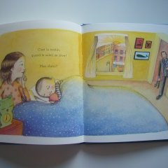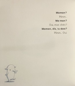 Absence, insomnie, questionnements, la solution tient à peu de choses : le langage. Ainsi par le dialogue, la maman arriva à rassurer et rendormir son enfant, certes tard, mais le but est atteint … pile quand le Papa rentre de son travail.
