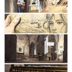 L’aquarelle donne une touche ineffable à l’ensemble, qui est rehaussé par des gravures historiques, noires et blanches, pour rappeler les temps anciens racontés. On a l’impression de toucher un tableau des côtes corses, puis de saisir un parchemin qui remmène un siècle plus tôt, et ce voyage constant est parfaitement entretenu par les choix graphiques, à la fois déjà vus mais audacieux par leur mélange. On s’arrêtera toutefois pour mettre en avant les couleurs de l’aquarelle douces, presque fragiles, qui fait luire une tour décrépie sur la mer, un corps nu dans une rivière ou une villa dans la neige.