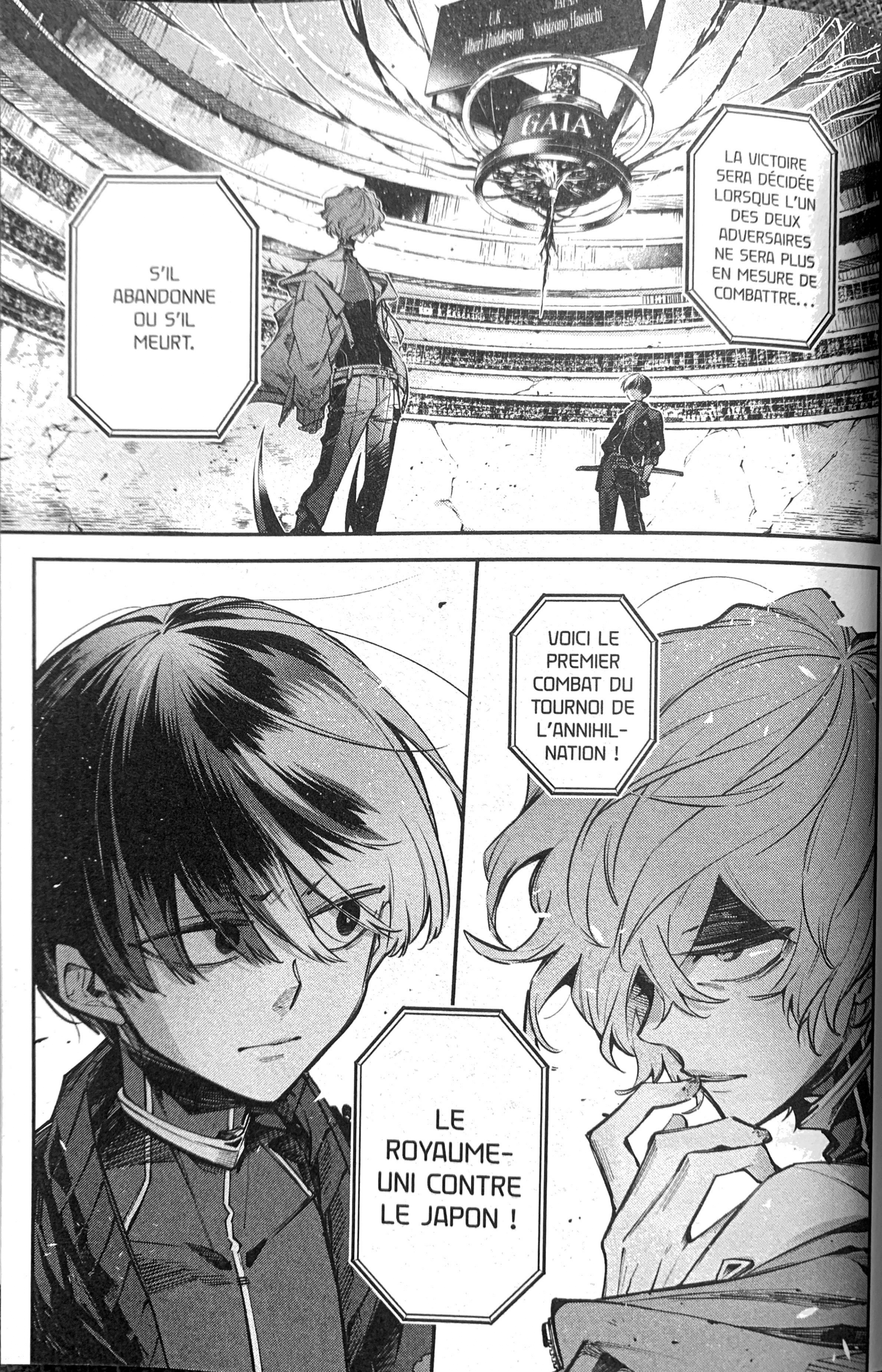 Ce premier tome est assez introductif, que ce soit pour présenter l’univers, les enjeux majeurs et les deux premiers « héros » de ce tournoi de l’Annihil-Nation. De nombreux arcs sont ouverts et nous sommes très sensibles aux questionnements proposés par Natsuko URUMA, que soit au sujet de l’écologie ou de Nous attendons la suite pour voir où Natsuko Uruma va nous emmener mais une chose est sûre : vivement le deuxième tome en septembre !