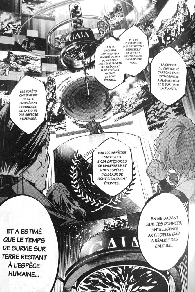 Malgré l’urgence dans laquelle se trouve la Terre, les dissensions entre les ministres restent prégnantes… Natsuko Uruma n’a pas eu à aller très loin pour trouver son inspiration ! Nous nous sommes complètement immergés dans cet univers désolé, nous projetant dans cette ambiance apocalyptique où les crises écologiques vécues par ses occupants font écho à notre propre situation. Les extinctions de masse et la pollution ne sont pas uniquement dans les pages de ce manga mais sont bien réelles.