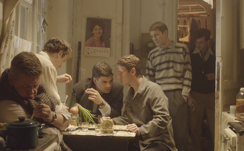 Le choix d’avoir limité le récit à quelques jours de novembre, en pleines célébrations de la Révolution d’Octobre, pendant que Sergueï Dovlatov assiste au tournage d’un film de propagande mettant en scène d’anciens auteurs, marque bien le passéisme de cette société. Or, cette atmosphère culturellement mortifère est exactement ce que maugrée tout du long ce personnage principal plein d’ambitions individuelles. C’est donc de sa frustration, et aucunement de son génie créatif, que ce film parvient à nous faire profiter. Seules deux courtes scènes nous plongeant dans les rêves du romancier nous permettent de prendre un minimum la mesure de son imagination. C’est davantage dans le rassemblement de groupes d’artistes clandestins que cette reconstitution historique trouve un écho moderne en puissance. Mais, encore une fois, la teneur outrecuidante des dialogues pèse lourdement sur ces scènes pourtant prometteuses au point de les rendre quelque peu sentencieuses.