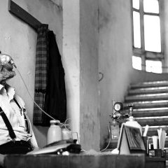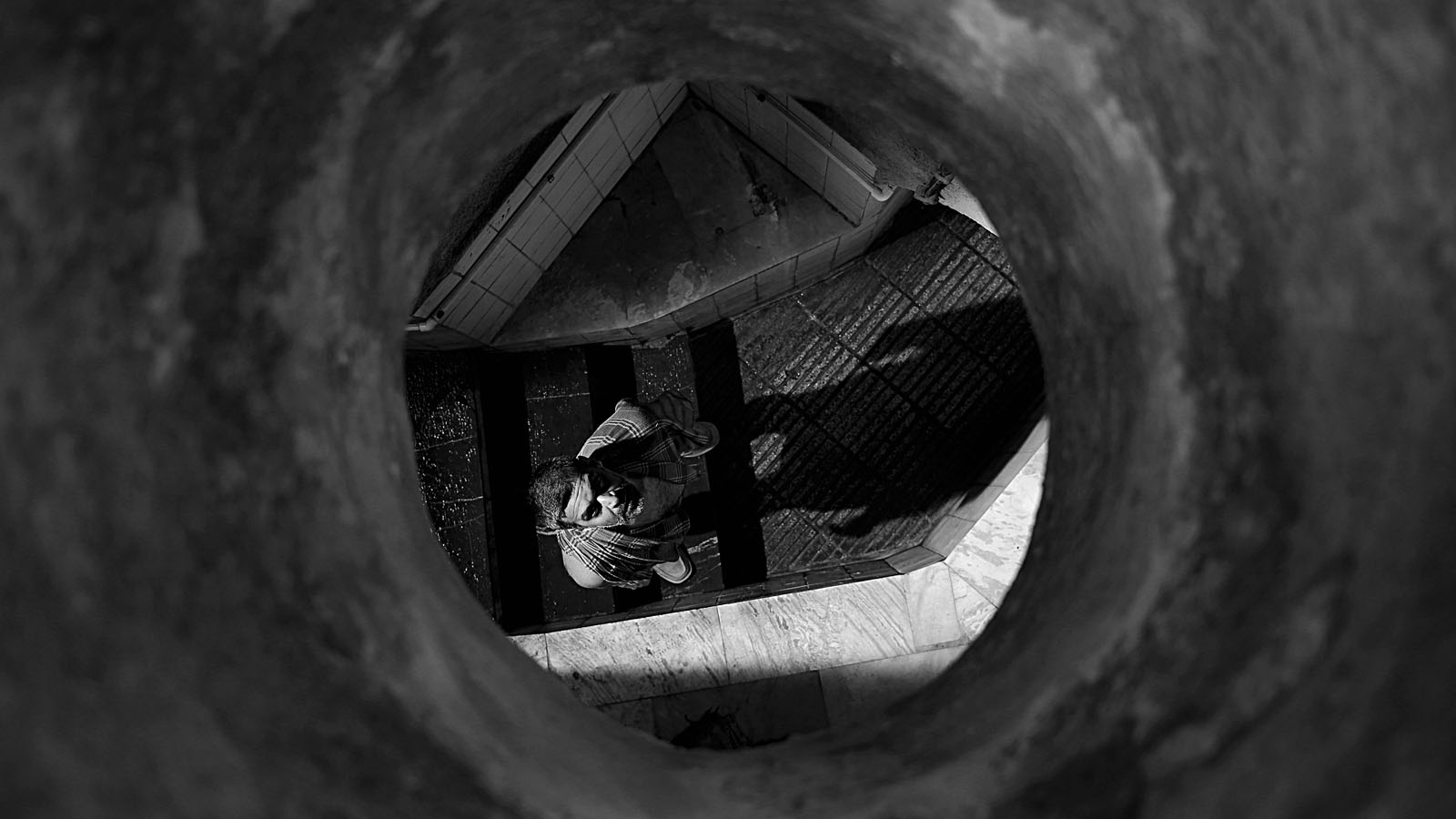 Chez lui, Téhéran devient un ville fantôme, envahie par une ombre grandissante qui gangrène décors et humains. Les rues étroites, les appartements obscurs, les escaliers biscornus sont filmés de manière quasi-expressionniste, lieux abstraits d’une inquiétante étrangeté. De même la bande-son, très réfléchie, refuse toute musique extra-diégétique et se concentre sur des bruits répétitifs, désagréables, angoissants. Il n’y a d’ailleurs qu’un moment, superbe, de musique : c’est la longue séquence de veillée mortuaire ponctuée par les tambours du titre. D’une certaine manière, ils seront relayés par le tonnerre à plusieurs reprises, mais les grincements, couinements, ronronnements sont plus importants que les dialogues peu fréquents, coupés ou inaudibles. Au fond la bande-son est le reflet d’un thème sous-jacent du film, l’incommunicabilité : on ne compte plus les appels téléphoniques qui n’aboutissent pas ou les questions sans réponses. Les personnages errent plutôt qu’ils ne se déplacent, et quand ils se parlent ne se regardent pas. La caricature en est ce vieux qui parle à son col, en cachette, et dont on se demande un temps s’il n’est pas doté d’un micro.