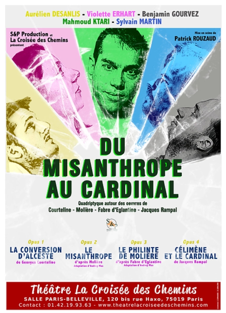 Résumé : De 1666 à 1992 en passant par 1790 et 1905. De Molière à Jacques Rampal en passant par Fabre d’Eglantine et Georges Courteline. De la comédie burlesque au drame contemporain en passant par la tragi-comédie et la comédie dramatique ! Une tétralogie pour un quadrityque scénique autour de mêmes personnages, autour de la haine de l’humanité tout entière, de l’hypocrisie, de la couardise et de la compromission. Autour d’Alceste, Philinte ou encore Célimène.