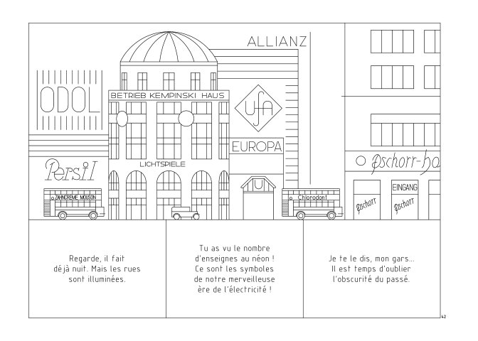 Après Ville nouvelle et Soleil mécanique, l’architecte Lukasz Wojciechowski prolonge son expérience de la bande dessinée sur le logiciel d’architecture AutoCAD. Si l’effet de surprise d’un dessin fait de lignes géométriques et épuré à l’extrême disparaît pour les lecteurs des deux premiers albums, le plaisir de lecture reste entier, notamment parce que l’auteur parvient à construire un récit historique pleinement maîtrisé, librement inspiré de la vie de son arrière grand-père. À travers la figure de Stan, Dum Dum – du nom des balles utilisées pendant la Première Guerre mondiale – questionne la place de l’homme dans un monde bouleversé par la guerre et l’innovation technique. L’album établit en particulier un lien clair entre la technique et le rejet de l’individualité, aspiré dans la masse. Les dernières planches s’avèrent à cet égard saisissantes et résument le propos général : la règle du dessinateur devient personnages en rang d’oignon qui portent tantôt un drapeau nazi ou marqué de la faucille et du marteau.