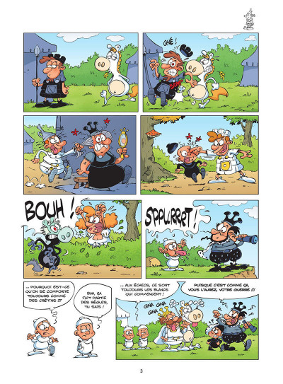 Alexandre Amouriq et Mirabelle mettent en couleurs ces gags, donnant un peu de verdure aux plaines entourant le champ de bataille noir et blanc.