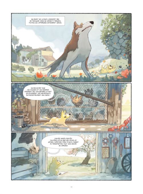 Ne vous méprenez pas, il ne s’agit pas d’une histoire d’animaux anthropomorphes à la Mickey ou à la Blacksad. Ici, les hommes sont bien présents, et c’est dans leur monde que vivent tous les personnages de cette BD. Certains animaux quadrupèdes se déplacent nu à quatre pattes, d’autres sont habillés et marchent debout, mais pas devant les hommes. Et ils passent selon les moments de l’une à l’autre attitude.