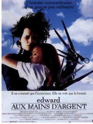 Critique : Dans son conte fantastique, Tim Burton aborde plusieurs thèmes, et nous propose pour les relayer, le personnage d’Edward, créature candide et balafrée, ayant pour mains de nombreuses paires de lames et autres ciseaux. À travers ce personnage fantoche et peu bavard, Burton s’intéresse principalement au regard d’autrui, dans un village habité par une classe moyenne américaine stéréotypée et puritaine.