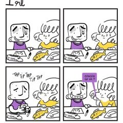 [Elosterv] Moi, c’est différent. Dans mon histoire "autobio", je parle de moi mais uniquement parce que j’ai l’habitude de dessiner mon avatar, sinon, ça n’a pas grand chose d’autobiographique. Même quand je fais mes histoires sur mon tumblr, c’est inspiré de scènes que je vois ou de discussions que j’ai mais c’est jamais moi. Ou, si c’est moi, j’utilise d’autres personnages pour raconter l’histoire. Je ne m’implique pas.